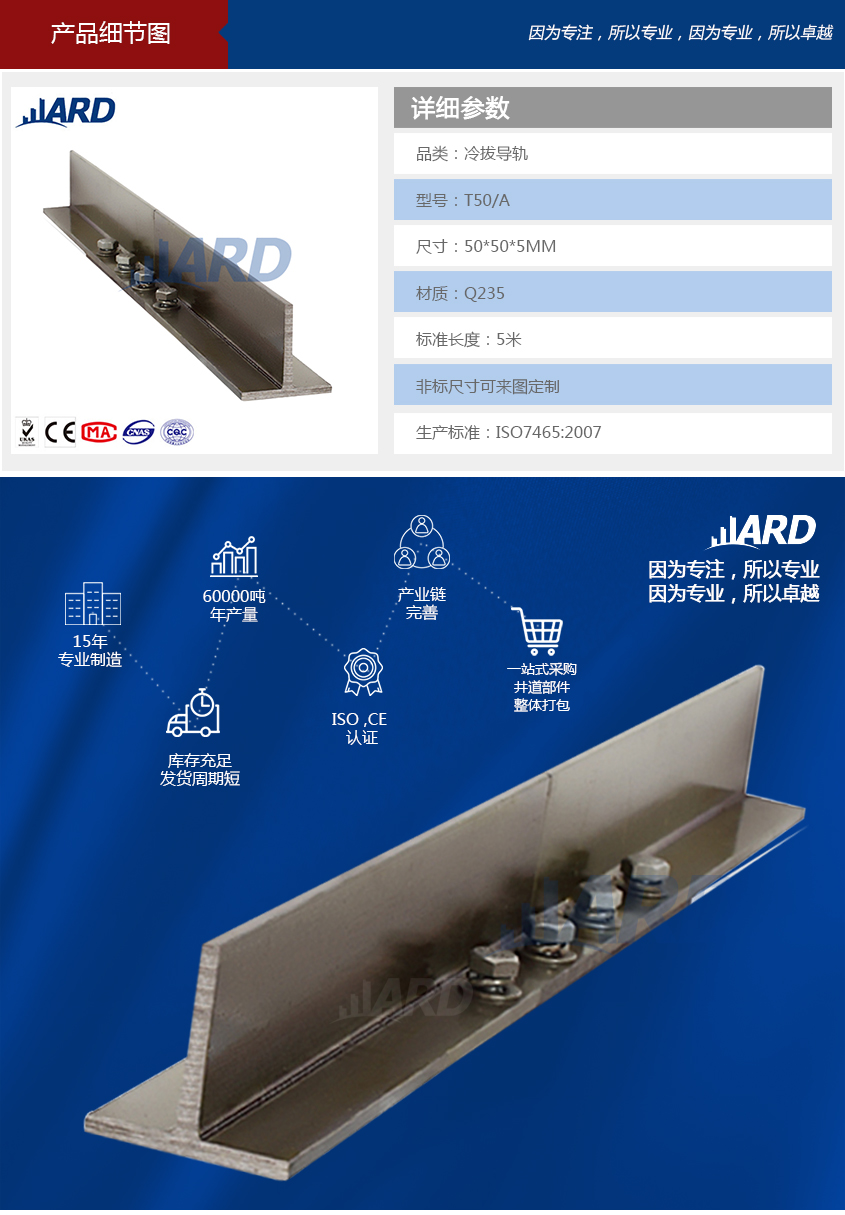 型號:T127-2/B 尺寸:127*89*16MM 材質(zhì):Q235 標準長度:5米 非標尺寸可來圖定制 生產(chǎn)標準:ISO7465:2007
