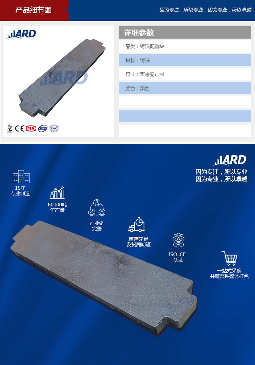品類:復合配重塊 外殼材質:0.5-0.8MM 鋼板,五面鋼板 填充材料:水泥礦石復合 尺寸:可來圖定制 比重:3.0-5.0噸/立方米 顏色:黃色,黑色