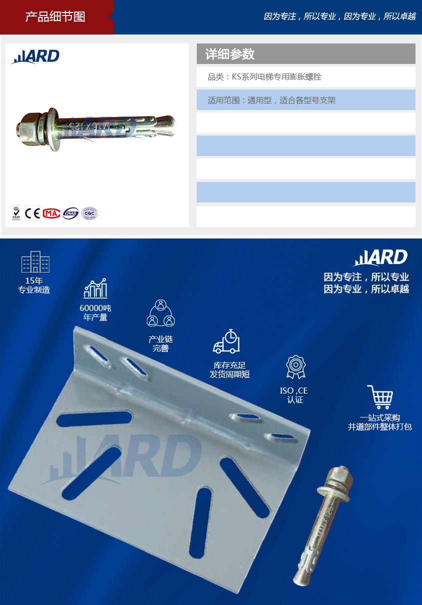 型號(hào):電梯專(zhuān)用膨脹螺栓 適用范圍:通用型,適合各型號(hào)支架