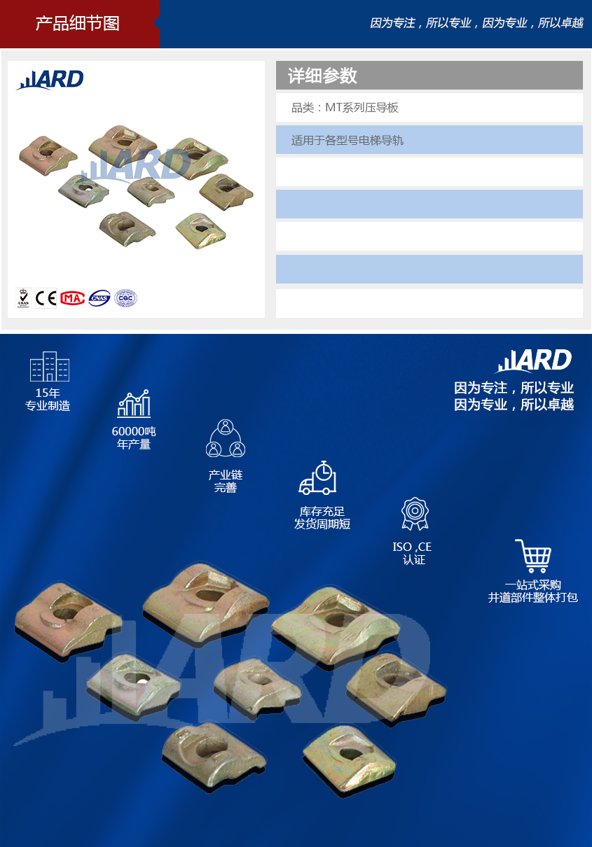 品類:T型壓導(dǎo)板 適用范圍:適用于各型號電梯導(dǎo)軌